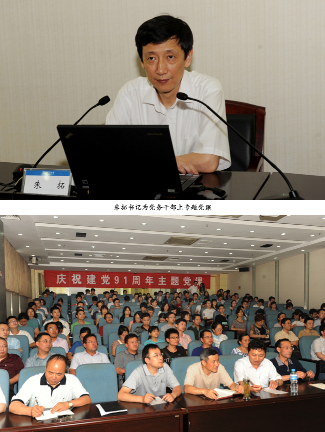 6月29日,建党91周年纪念日前夕,河海大学党委书记朱拓以《敢于担当,有所作为----基层党组织保持党的先进性和纯洁性的若干思考》为题,给学校的党务干部上了一堂庆祝建党91周年专题党课。党课由校党委副书记陈德奎主持。