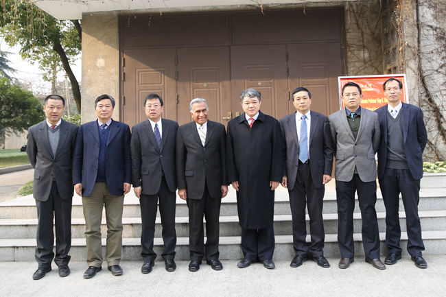 王乘校长(左五)和维贾伊•蒂尔院士(左四)一行合影留念