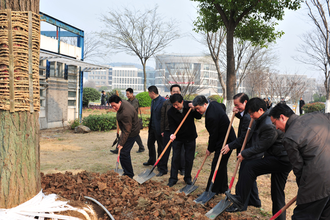 校党委书记朱拓、校长王乘、党委副书记陈德奎和副校长李乃富与广大师生一道为校园栽下春日新苗。挥锹培土、提桶浇灌,校领导与师生们同心协力,将承载着建设生态校园、献礼百年校庆的一份份希望倾洒在正抽出新芽的树苗上。