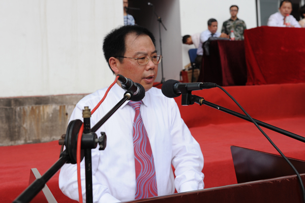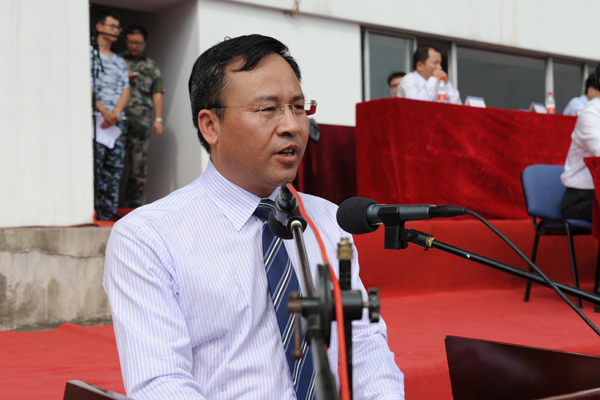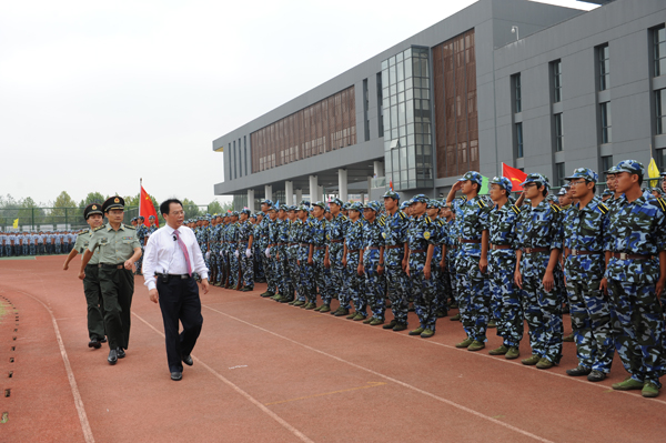 徐辉校长检阅了参加军训的全体学生,并发表了题为《把握开端,专注学习,自信成才》的热情洋溢地的讲话。徐校长代表全校师生对2013级新同学成功步入河海大学表示祝贺,向出席典礼的嘉宾表示热烈的欢迎,向奋斗在一线的舟桥旅全体承训官兵表示衷心的感谢和崇高的敬意。徐校长介绍了河海近百年办学历史所积淀的光荣传统和特色优势,并对新生提出了三点希望:第一,通过坚守梦想,明确责任,把握好开端;第二,通过将知识获取与能力培养并重、将智商提升与情商塑造并重、将素质养成与作风锤炼并重的思想灌输于学习,学会学习。第三,通过树立专业自信和成才自信,做一名自信的河海人。