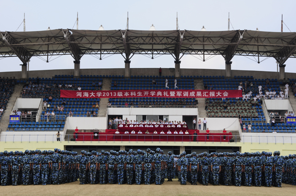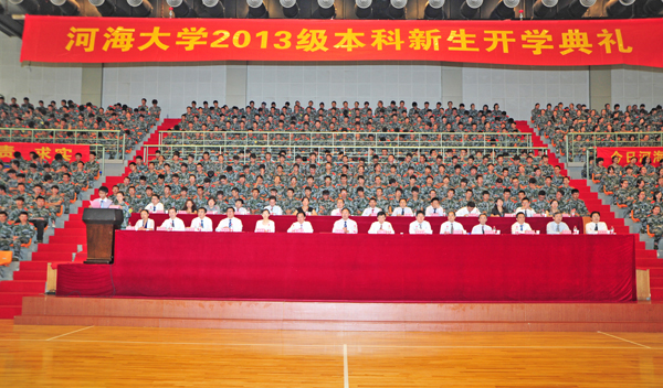 9月22日,我校隆重举行2013级本科生开学典礼暨军训成果汇报大会。典礼嘉宾、河海大学杰出校友、上海勘测设计研究院石小强院长,曹铮副总经济师;南京舟桥旅政委秦新大校,副政委张念亮中校,政治部副主任彭峰中校应邀出席。我校党委书记朱拓,校长徐辉,副校长鞠平,党委副书记陈德奎,副校长朱跃龙,党委副书记王济干,副校长唐洪武,副校长陈星莺,海军国防生选培办主任乔光玉大校,各学院及相关部门负责人参加了大会。