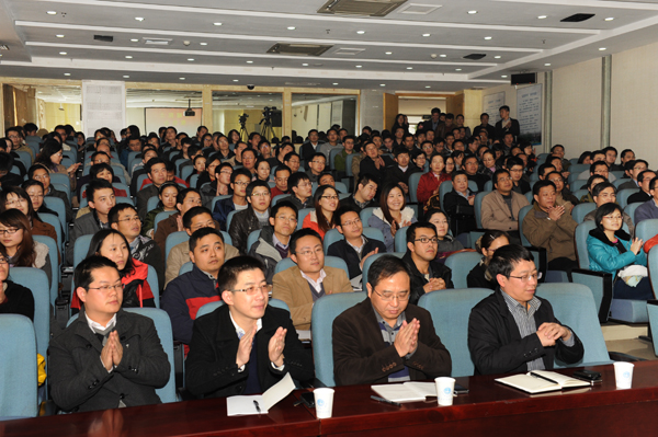 校本部45周岁以下教授、青年教授、学术带头人、35周岁以下副教授及部分青年教师200余人聆听了报告。常州校区全体青年教师通过网络直播收看了报告会。