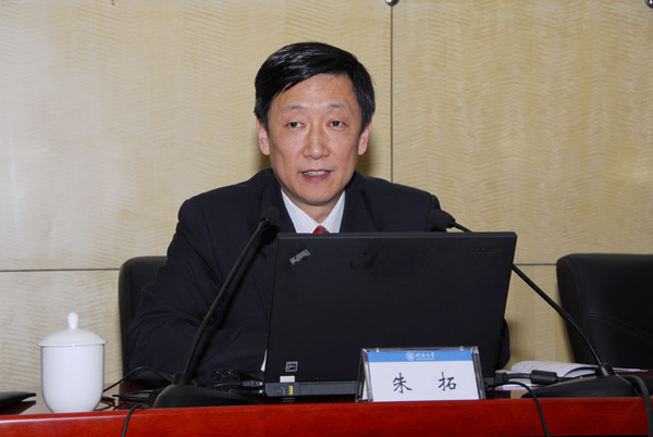 朱拓书记的讲话分为三个部分:一是理性思索2013年学校发展态势,着重谈了自己对学校在全省高等教育成果中所作的贡献、对ESI排名的变化和如何看待大学排行榜、对争取实现的任务没有取得突破的思考与认识;二是科学谋划2014年学校重点工作,全面阐述了把方向、落实立德树人根本任务,促改革、推进学校事业健康发展,定章程、启动现代大学制度建设,铸文化、开展百年校庆筹备工作,再思考、建设水利特色世界一流大学的意义与内涵;三是切实加强领导干部队伍建设,要求全体与会者深入学习贯彻十八大及十八届二中、三中全会和习近平总书记系列重要讲话精神,以卓著的团结描绘改革发展蓝图,以卓然的智慧开创改革发展的新局面,以卓越的能力引领改革发展进程,以卓远的操守推动学校新跨越,切实承担起自己的历史责任,以强烈的使命感,敢于啃硬骨头,敢于涉险滩,以更大的决心冲破思想观念的障碍、突破利益固化的藩篱,不断解决前进道路上的问题和挑战。