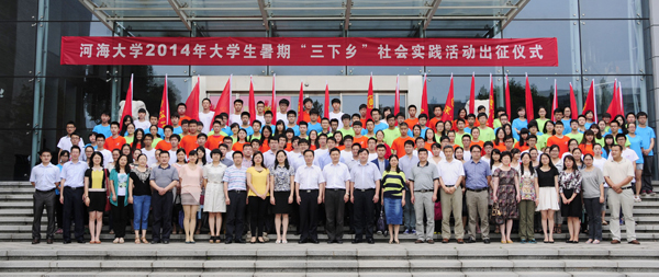 7月2日,河海大学举行2014年大学生暑期“三下乡”社会实践活动出征仪式。校党委副书记郭继超出席活动,并与有关部门负责人一道向社会实践校级重点团队授旗。
