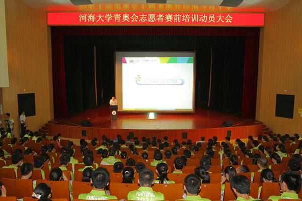 7月23日,河海大学召开青奥会志愿者赛前培训动员大会。河海大学党委书记朱拓、校党委副书记郭继超、南京团市委副书记戴修成出席会议。青奥会抵离中心、交通运行中心、武术场馆志愿者管理团队、全体志愿者和学校相关部门负责人参加会议。