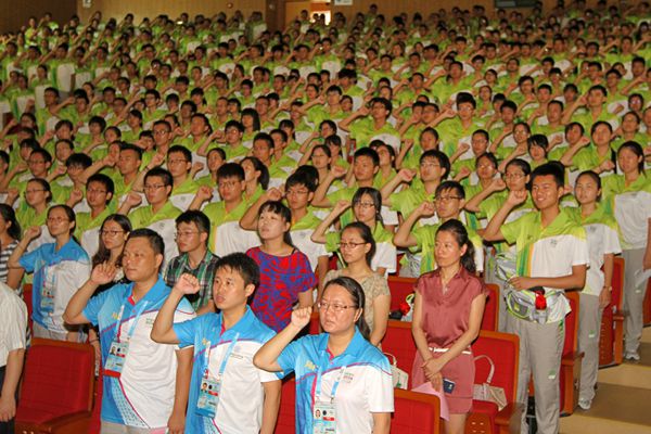 全体志愿者在会上庄严宣誓:“热情参与,真情奉献,不负重托,勇于担当,率先垂范,团队协作,弘扬奥林匹克精神和志愿服务精神,用实际行动践行总书记的指示和要求,用青春的激情打造最美的‘中国名片’。”身穿青奥会志愿者制服的近1300名志愿者使河海大学江宁校区文体中心剧场充满青春的激情,又为炎炎夏日带来几许清凉。用青春激情打造最美的第一张“中国名片”也成为河海青奥会志愿者的共同梦想和行动。(陈伟刚)