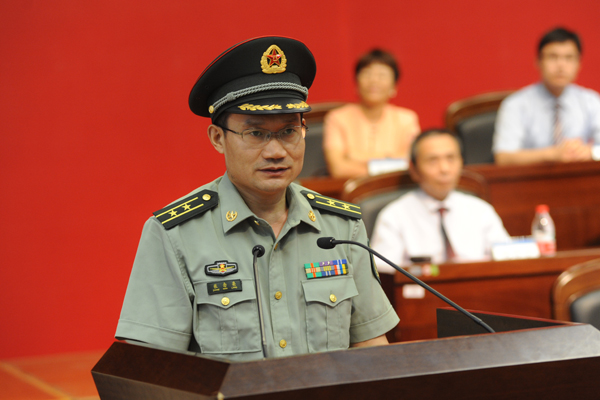 南京舟桥旅副政委张念亮表示为2014级新同学成为一名“水之子”而感到骄傲和自豪,并对即将参加军训的新生和教官提出了希望和要求:希望同学们认真对待、积极参训,学习军事技能和我军的优良传统,为大学生活打好基础;希望所有承训官兵融入河海、学习河海、奉献河海,关爱学生、科学组训、树好形象,高标准完成军训任务。