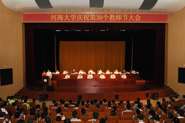 校长徐辉在主持大会时说,百年大计,教育为本。教育大计,教师为本。教师是人类文明的传承者,是促进教育事业又好又快发展,培养高素质人才的推动者。长期以来,河海大学广大教师坚持“育人为本,德育为先”的教育观念,弘扬“自强不息,止于至 善”的优良传统,学为人师,行为世范,默默耕耘,无私奉献,为国家培育桃李,为河海奉献青春。