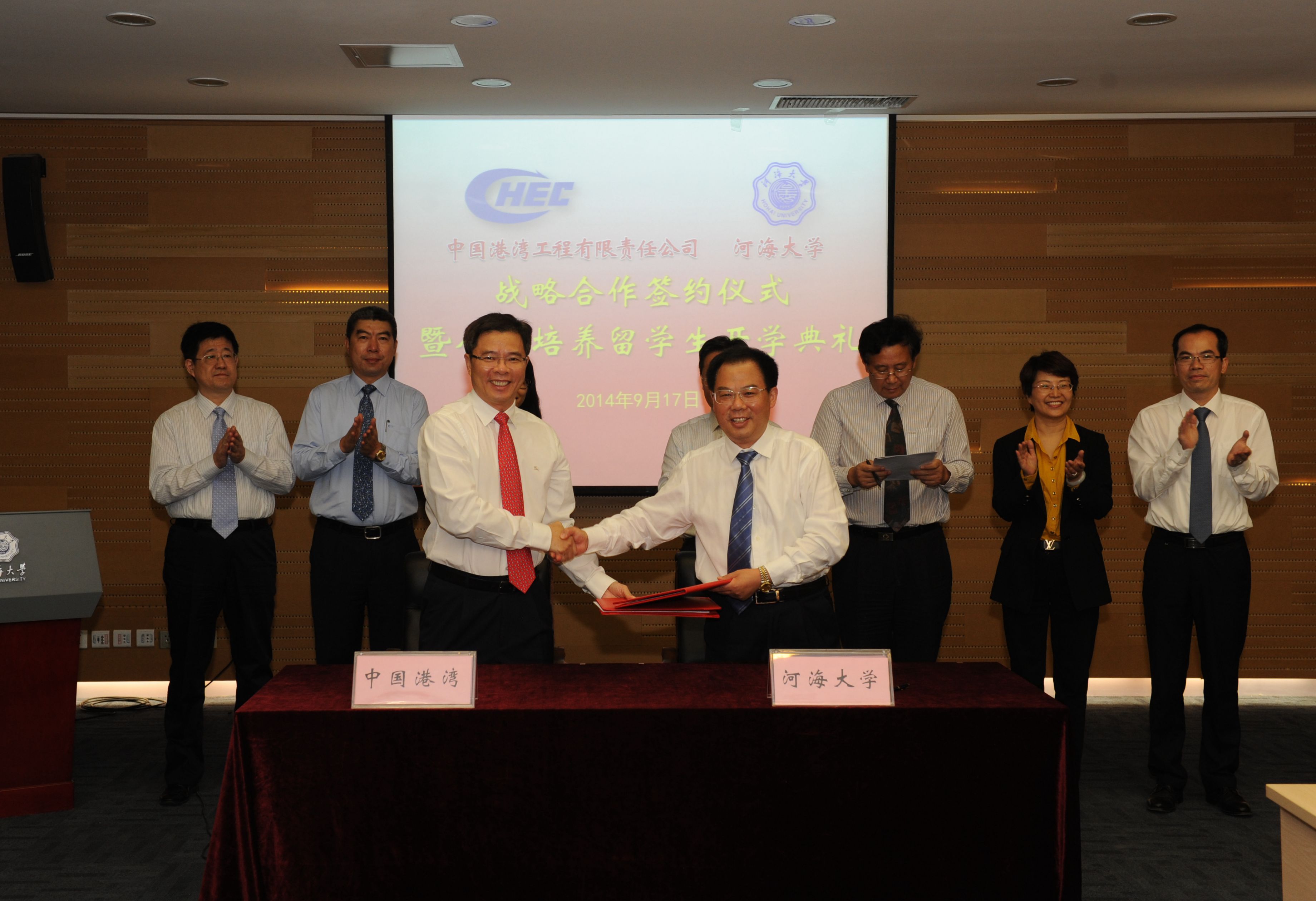 徐辉校长介绍了我校的总体情况,他指出,河海大学与中港公司保持着良好的合作关系。双方就整体战略合作、留学生联合培养、“中港奖学金”设立三个方面达成共识,签订协议,标志着双方合作发展进入了一个新的阶段,也为双方合作发展建立起重要的载体和平台。