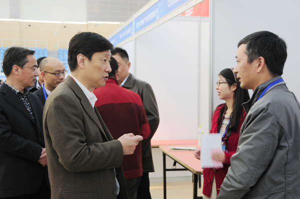 11月18日,河海大学举办2015届毕业生供需洽谈会。校党委书记朱拓、副书记郭继超到招聘会现场与毕业生和用人单位进行了交流。