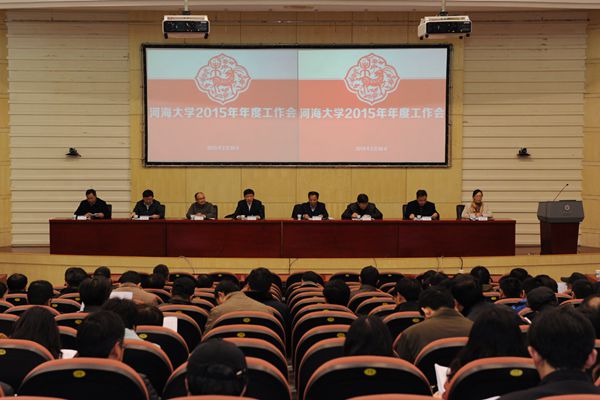 新学期开学前夕,河海大学于2月28日召开了2015年度工作会议。会议的主要任务是:贯彻落实校党委全委会精神,回顾总结过去一年的工作,通报和讨论学校发展的主要设想,部署2015年工作。校领导、院士、校长助理、民主党派负责人和全体中层干部参加了会议,校党委书记朱拓、校长徐辉先后主持会议。