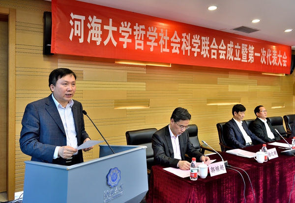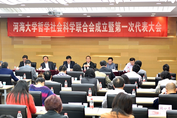 朱拓书记致欢迎辞,徐之顺副主席宣读了省社科联《关于同意接纳河海大学社科联为团体会员的批复》,郭继超副书记宣读了校党委《关于同意成立“河海大学哲学社会科学联合会”暨召开第一次代表大会的批复》。社科处处长史安娜作了筹备工作报告,宣传部部长万国彤对《河海大学哲学社会科学联合会章程》起草情况进行了说明,全体代表审议通过了《章程》并选举产生了第一届理事会理事、常务理事。朱拓当选为理事会主席,郭继超、郑垂勇、万国彤、史安娜、潘洪林、孙其昂、许长新、陈绍军、葛勇平当选为理事会副主席,史安娜兼任理事会秘书长。