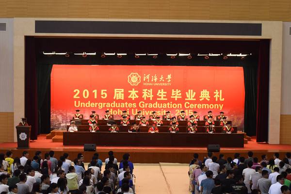 毕业典礼上,徐辉校长发表了《发展能力 顺势而为》的演讲,向学有所成、即将开启人生新征程的四千余名毕业生同学送上最衷心的祝贺和最美好的祝福,向为毕业生成长倾注了无数心血的师长们表示崇高的敬意,向始终关爱、鼓励并支持同学们的亲友们表示衷心的感谢。对于即将走出校门、迈入社会这所大课堂的学子们,徐辉校长勉励大家要以水为师,因势而谋、应势而动、顺势而为,力争成为知识与能力兼备,智商与情商兼备,素质与作风兼备的栋梁之才。在未来的学习和生活中,继承并着重发展三种能力,一是水“因势利导”的适应能力;二是水“融汇贯通”的学习能力;三是水“坚韧不拔”的探索能力。徐校长指出,2015届毕业生是百年河海育人史上极为幸运并具有里程碑意义的一届学子,河海将迎来百年华诞,母校期待毕业生们奏响新时代的青春乐章,并会永远为大家祝福,给大家力量,祝愿大家前程似锦,生活幸福。