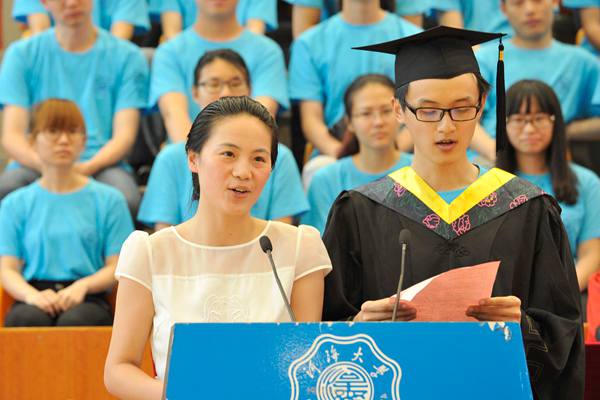 教师代表殷德顺教授和刘小峰教授向毕业生顺利完成学业表示祝贺,并寄语毕业生始终要铭记放飞梦想、追逐梦想,在各自的学习和工作岗位上勤奋努力、诚实做人,踏实做事,争做河海好儿女、共筑河海好声望、齐唱河海好声音,向社会树立河海品牌,为母校的发展和荣誉增砖添瓦。