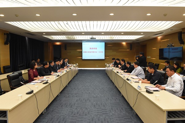 双方举行了座谈会,会议由校长徐辉主持。校党委书记朱拓对杨学鹏书记一行的到来表示热烈的欢迎,并介绍了学校围绕“双一流”提升一流学科建设、服务创新驱动提升人才培养质量、凝练大学文化精神引领学生培养、举办百年校庆展示学校办学辉煌等方面重点工作及未来发展规划。