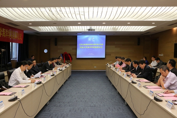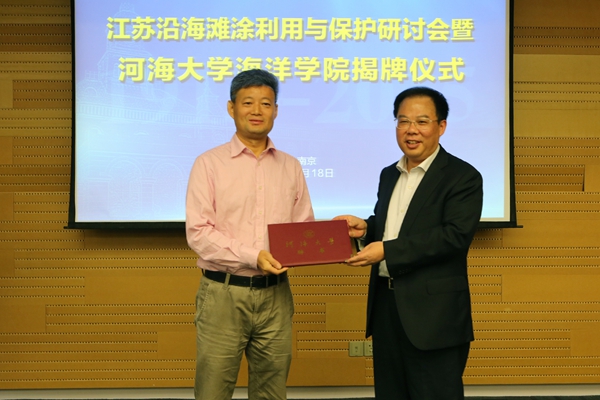 10月18日,河海大学举行江苏沿海滩涂利用与保护研讨会暨河海大学海洋学院揭牌仪式。江苏省人大常委会秘书长吕振霖、省沿海办主任、省发改委副主任林一峰、省海洋与渔业局局长汤建鸣、省发改委副主任汤明海,江苏省沿海开发研究中心顾问、兄弟高校代表,校党委书记朱拓、校长徐辉、原校长张长宽、副校长朱跃龙,校内有关部门、学院负责人和教师代表参加会议。会议由副校长朱跃龙主持。
