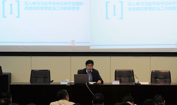 张文斌副司长从深入学习习近平总书记关于加强和改进高校思想政治工作的新思想、准确把握高校思想政治工作的新形势、全面落实高校思想政治工作的新要求等方面,对当前高校思想政治工作的形势和任务进行了详细阐述和深入解读,并就进一步加强和改进学校思想政治工作提出了明确要求。