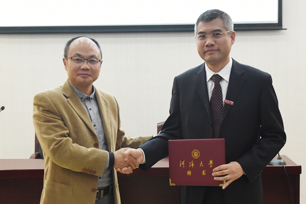 徐辉校长为李九虎校友颁发兼职教授证书