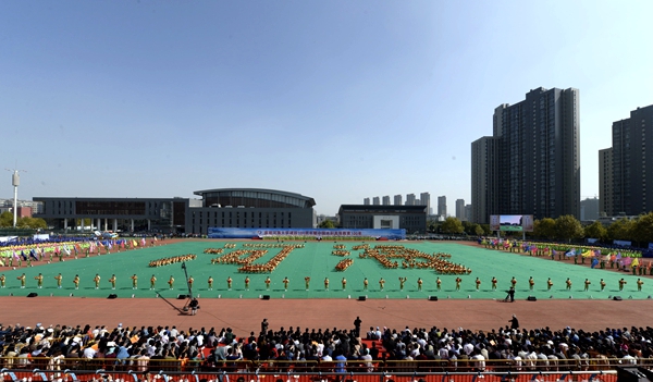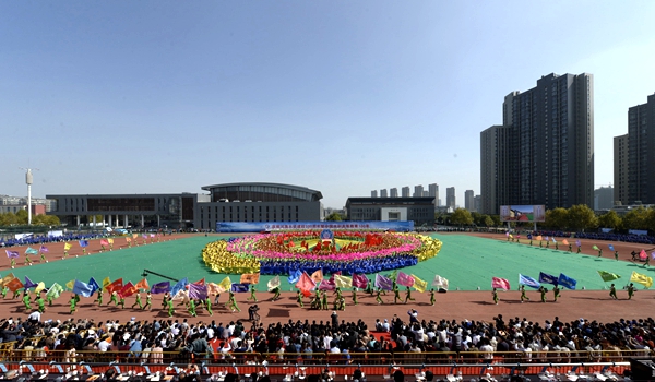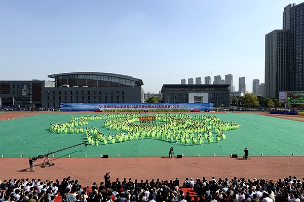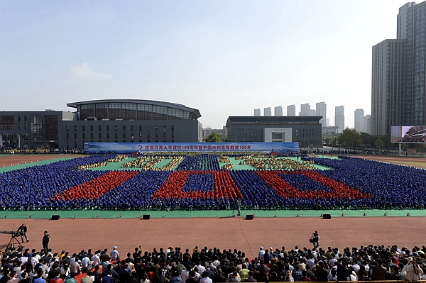 庆祝大会上,3000余名师生自编自导自演了大型团体操《大哉河海》,通过人才蒸蔚起、工学昌明时、智者惟乐水、毋负邦人期四个篇章,气势磅礴地展示了河海百年发展的恢弘华章,深情激昂地诠释了“大哉河海奔前程,毋负邦人期”的价值追求。