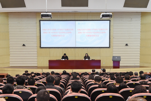 12月14日,我校举行学习贯彻《中国共产党廉洁自律准则》《中国共产党纪律处分条例》精神专题辅导报告会,邀请江苏省纪委案件审理室李桂琴主任作专题报告。校党委书记朱拓主持报告会并讲话。
