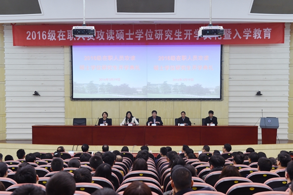 3月19日,我校举行2016级在职人员攻读硕士学位研究生开学典礼。副校长朱跃龙出席典礼并讲话。