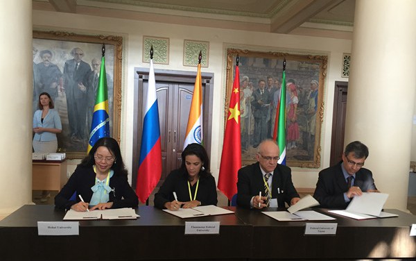 4月7日至9日,金砖国家网络大学第一次全体代表会议在俄罗斯叶卡捷琳堡举行,河海大学副校长陈星莺率团出席会议,并与来自其他四个国家的合作院校共同签署了《加入金砖国家网络大学议定书》。