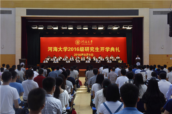 9月9日,我校隆重举行2016级研究生开学典礼。校党委书记朱拓,校长、研究生院院长徐辉,典礼嘉宾、河海大学杰出校友、南京水利科学研究院院长张建云院士,副校长鞠平,副校长朱跃龙,副校长唐洪武,党委副书记郭继超,党委副书记孟新出席典礼。朱跃龙副校长主持开学典礼。