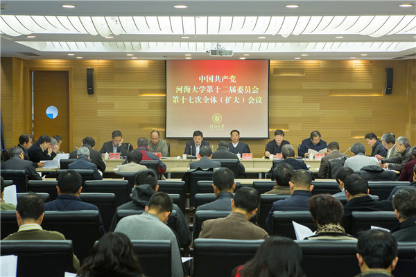 中国共产党河海大学第十二届委员会第十七次全体(扩大)会议于2017年1月14日召开。校党委委员出席会议。校纪委委员、党代会部分代表、校领导、校长助理、中层正处职干部、民主党派负责人列席会议。校党委书记唐洪武主持会议。