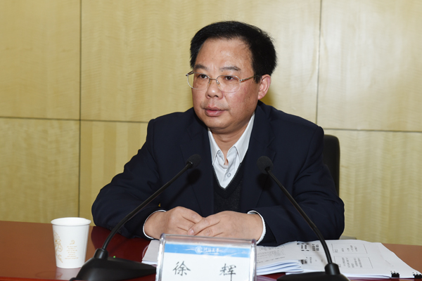 校长徐辉作题为《贯彻落实全国高校思想政治工作会议精神,全面推进“双一流”建设》的报告。徐辉校长对近几年学校发展思路的思考与实践情况进行了深刻剖析,梳理了发展瓶颈,明确了思路与举措,就“双一流”建设的战略选择、战术设计和实施步骤提出总体要求,并就2017年工作进行了部署。一是以贯彻落实全国高校思想政治工作会议精神为主线,完善顶层设计;二是以立德树人、提升质量为核心,扎实开展本科教学审核评估整改工作;三是以建设世界一流水利学科为目标,优化学科专业布局;四是以学科需求为导向,持续推进拔尖人才引育工作;五是以加强组织策划和政策导向为重点,全面提升科研水平和创新能力;六是以提升国际交流合作的层次和水平为要求,提高国际影响力;七是以激发发展活力为原则,改革考核评价体系;八是以巡视整改为抓手,加强内部管理和条件建设;九是以拓展资源为目的,深化校地校企合作。
