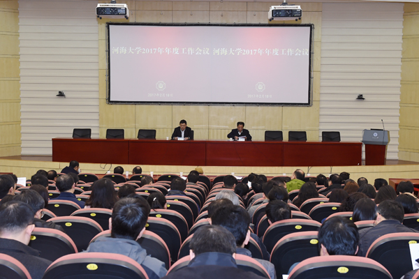 2月18日,河海大学召开2017年年度工作会议。会议聚焦贯彻落实全国高校思想政治工作会议精神,全面推进“双一流”建设,对2017年重点工作进行全面部署。校领导、院士、校长助理、全体中层干部及有关单位负责人、民主党派负责人参加会议。