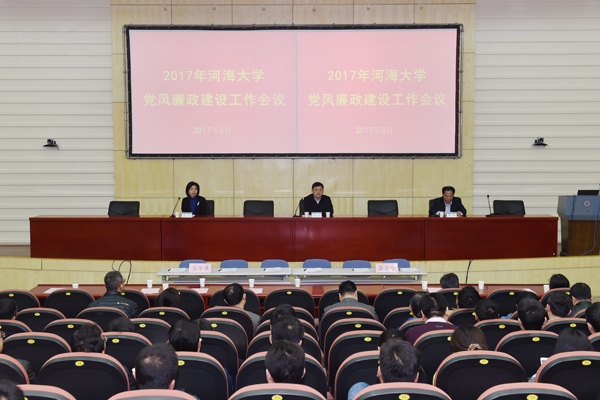 3月29日,河海大学召开2017年党风廉政建设工作会议。校党委书记唐洪武出席会议并讲话,校长徐辉主持会议。校党委副书记、纪委书记孟新总结了2016年学校党风廉政建设与反腐败工作,并对2017年工作进行部署。