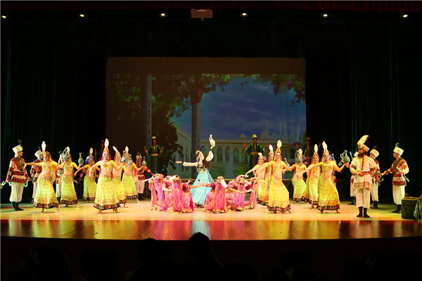 在美轮美奂的敦煌壁画的背景中,最具中华民族风韵的“千手观音”、婀娜多姿的“波斯舞”、敦煌壁画里“飞天”、风情万种的“反弹琵琶”等经典节目先后亮相,各种民族元素通过舞蹈的形式穿插在跌宕起伏的故事情节里,引领观众重走了繁荣兴盛的丝绸之路,给师生们带来了多元共融的文化体验,赢得全场的热烈掌声。