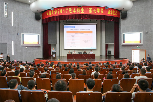 今天上午,我校还举行了2017级本科学生“家长学校”启动仪式,校党委副书记郭继超出席仪式并向家长们介绍了学校总体情况;学校相关部门负责人分别就学生教育管理服务、人才培养和学籍管理、学生综合素质发展培养情况等内容进行了交流。“家长学校”已经连续举办5年,通过这种方式,有效帮助家校双方在家庭教育和学校教育之间建立起了牢固的纽带,共同陪伴学生在大学本科阶段成长成才,奠定今后发展的坚实基础。近800名家长参加了此次启动仪式。随后,学校还将开展“扬帆河海 人生启航”新生入学教育活动,把新生入学教育贯穿于新生入学后的整个学年。通过集体教育和院系分散教育相结合、学生整体教育与特殊重点教育相结合、专业教师教育与学长朋辈帮扶相结合、日常教育与生活关怀相结合的方式,帮助新生尽快了解大学生活、更好适应大学学习、有效融入社会发展。(文/孙悦 图/孟凯)