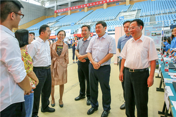 校党委书记唐洪武、校长徐辉、校党委副书记郭继超、副校长陈星莺来到新生报到现场慰问工作人员、指导迎新工作。校领导们逐一在每个学院报到点详细了解了各院迎新工作进展情况,亲切慰问了各学院接待新生的工作人员和志愿者,对他们的辛勤付出给予了充分肯定,希望他们热情工作,为新生和家长提供最优质的服务,确保每一位新生都能及时、顺利的报到。校领导在绿色通道现场为家庭困难学生发放了爱心大礼包,还来到学生宿舍与新生及家长亲切交谈,介绍了学校相关情况,了解了新生及家长的实际需求,为广大新生开启崭新的大学生活送上美好祝愿,并听取了他们对学校迎新工作的意见和建议。