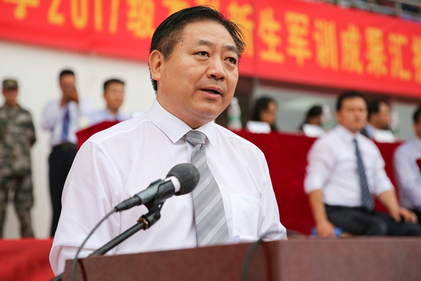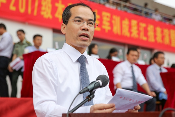 校长徐辉宣布2017级学生军训阅兵开始