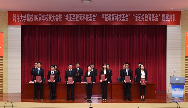 河海大学举行建校102周年校庆大会暨“钱正英教育科技基金”“严恺教育科技基金”“徐芝纶教育基金”颁奖典礼