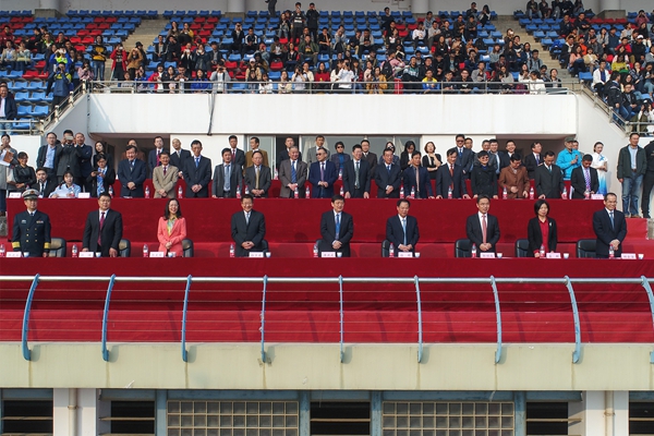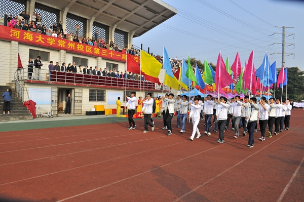 10月27日,时逢全校师生喜迎建校102周年之际,河海大学举行第五十三届田径运动会暨第十九届老年人运动会开幕式。校党委书记唐洪武,校长徐辉,副校长徐卫亚,党委副书记郭继超,副校长陈星莺,党委副书记、纪委书记孟新,副校长许峰,副校长郑金海,中国人民解放军驻河海大学选培办主任乔光玉大校以及各学院、各部门负责人出席开幕式。副校长陆国宾出席常州校区第三十一届田径运动会开幕式。