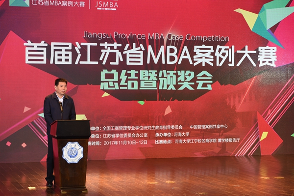 河海大学党委书记唐洪武指出,江苏省MBA案例大赛是推动江苏研究生教育培养模式改革的重要抓手,通过剖析真实发生的相关案例,训练未来领导者运用管理知识和技能把握商业现实的能力,以及面临挑战时的决策及分析能力,帮助MBA学员构建成熟商业思维,为未来发展打下坚实的基础。借此平台可以加强省内商学院之间的交流,推动江苏省工商管理教育水平,加强管理教育界相互之间以及管理教育界与企业界之间的合作与交流。
