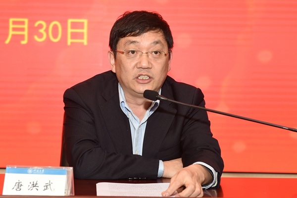 唐洪武书记指出,双传学同志的十九大精神宣讲报告主题鲜明,内容丰富,深入浅出,精彩纷呈,既有时代的高度,又有理论的深度,更有实践的广度,令人深受启发、深受教育、深受鼓舞,对我们科学认识、准确把握党的十九大精神、习近平新时代中国特色社会主义思想,具有十分重要的意义。他表示,全面学习宣传贯彻党的十九大精神,是我校当前和今后一段时期的首要政治任务。他要求,一要提高政治站位,把学习宣传贯彻党的十九大精神作为当前首要政治任务抓紧抓好;二要强化主线意识,用习近平新时代中国特色社会主义思想武装头脑;三要勇担历史使命,奋力书写夺取新时代中国特色社会主义伟大胜利的河海篇章。他强调,学习贯彻党的十九大精神,最根本的是学习贯彻习近平新时代中国特色社会主义思想,关键在于以学促干、知行合一。要坚持以习近平新时代中国特色社会主义思想为指导,不忘初心、牢记使命,贯彻好党的教育方针,践行好“四个服务”,全面深化综合改革,不断丰富拓展“立德树人”的实践内涵,真正把十九大精神贯彻落实到办学治校、教书育人的各方面和全过程,以一流业绩奏响“双一流”建设的最强音,为建设中国特色社会主义现代化强国、实现中华民族伟大复兴的中国梦贡献河海人的智慧和力量。