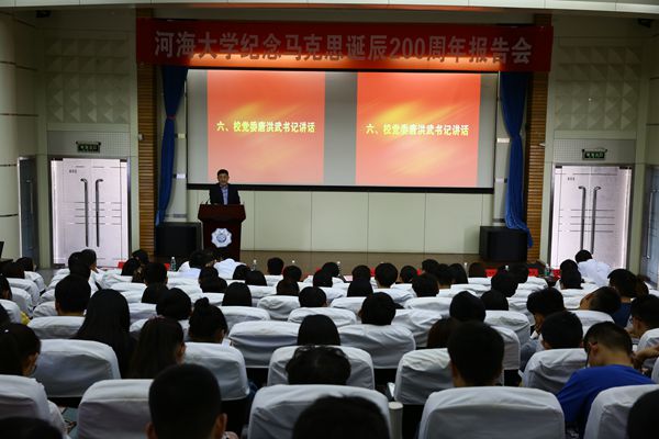 唐洪武书记在讲话中表示,我们纪念马克思,就是要坚定不移地坚持马克思主义的指导地位,就是要学习好、宣传好、贯彻好当代中国的马克思主义。并勉励师生:一是要学好用好马克思主义经典著作,熟练掌握马克思主义立场、观点、方法,坚持学以致用、用以促学,不断提高马克思主义理论素养。二是要当好马克思主义的宣传员、传播者,研究阐释、宣传普及马克思主义经典著作,让马克思主义理论为更多的同学所了解所接受。三是要以学促干、知行合一,坚持以习近平新时代中国特色社会主义思想为指导,不忘初心、牢记使命,以成为社会主义优秀建设者和可靠接班人为目标,以“中国灵魂,全球视野,河海特质”为标准,为建设中国特色社会主义现代化强国、实现中华民族伟大复兴的中国梦贡献河海智慧和力量。