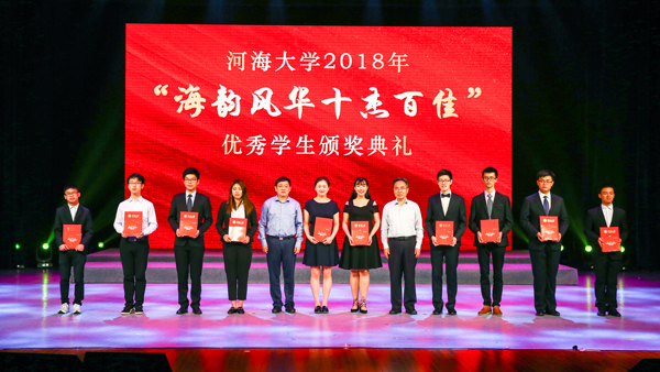 典礼上对道德风尚、学习研究、创新创业、实践实训、志愿公益、文化艺术、体育运动、社会工作、国际交流、自强自立十个类别“海韵风华百佳学生”和“海韵风华大学生年度人物”获奖学生进行了表彰。他们是创新创业的追梦人、不忘初心的践行者、河海速度的领跑者、中外人文交流青年使者、热爱生活自强不息的追梦人。学校领导、学院和相关部门负责人分别为十位“海韵风华大学生年度人物”获奖学生撰写了颁奖词。2018年“海韵风华大学生年度人物”获奖代表分享了各自的青春故事。优秀学生代表江晨辉同学宣读倡议书,号召全校青年“爱国,做祖国的建设者;励志,做青春的奋斗者;求真,做学问的真知者;力行,做追梦的实干家”,砥砺前行,将个人追求与中国梦想紧密结合,不负时代使命,不负青春年华。