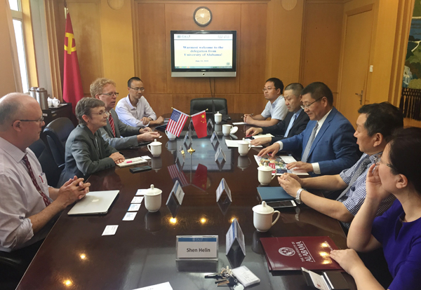 在座谈中,徐卫亚副校长介绍了学校的基本情况、发展思路和近期工作重点,希望两校在已有合作的基础上继续拓展合作领域。特蕾莎副教务长介绍了阿拉巴马大学的总体情况以及优势学科,表示双方在多个领域都有合作的契合点,希望今后能够加深合作。双方决定近期签署校级合作备忘录,并在合作科研、“3+2”本硕联合培养、双方互派学生短期访学等领域进一步拓展合作。