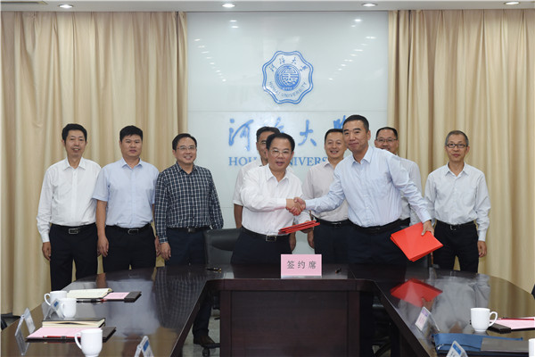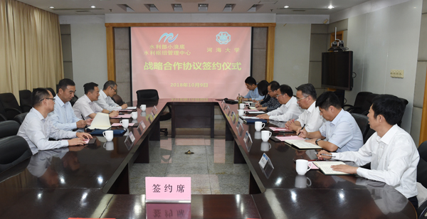 徐辉校长、张利新主任共同签署战略合作协议。根据合作协议,双方将在重大水利工程关键技术问题联合研究、先进科技成果转化应用、联合培养专业人才、共建大学生实习实训基地等方面展开深入合作,充分发挥各自的资源和人才优势,共同保障国家水安全和促进水科学发展。