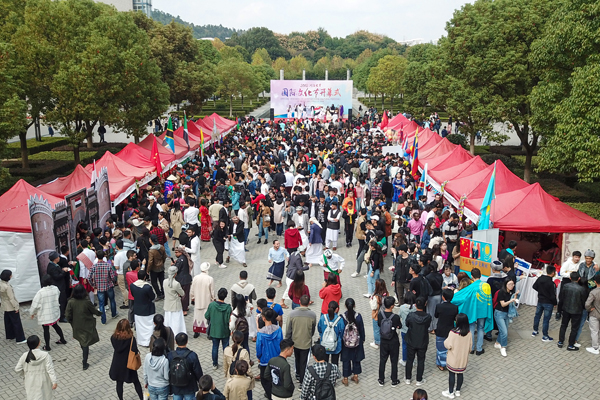 活动现场,22个国家展台的精美食物在丹桂飘香的河海校园里形成了“舌尖上的世界”,令在场的老师和同学们流连忘返。不同国别、不同信仰、不同民族、不同肤色的各国学生用英文或中文热切地交流着,小浪底广场俨然成了一个欢乐的国际大家庭。(文/应海华、杨颖 图/孟凯)
