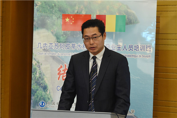 徐辉校长向圆满完成培训任务的各位学员表示诚挚的祝贺,向为培训班付出辛勤劳动的合作单位和个人表示衷心感谢。他指出,近年来学校充分发挥水利特色和学科优势,围绕国家“一带一路”倡议和“走出去”发展战略,搭建与行业、企业合作的政产学研合作平台,积极贡献河海力量。徐辉校长希望以此次培训项目的成功实施为起点,进一步加强交流合作,全面提升服务世界水电发展的水平和能力,并希望学员回国后不忘初心、坚持理想,勤于学习、厚积薄发,牢记使命、不负众望,将所学先进的水电专业知识积极服务几内亚的水电事业和经济建设,并作为中几之间合作与交流的使者,为深化中几友谊而努力。