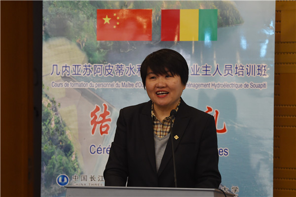 中国水利电力对外有限公司执行董事、党委书记李丽感谢河海大学为此次培训所作的各项工作,使得学员们能够学有所成圆满结业。她表示,本次培训交由河海大学组织实施,是公司慎重考虑作出的最佳选择,这不仅完全契合几内亚政府的要求,也为中水电公司在几内亚实施属地化管理培养了储备人才。苏阿皮蒂水电站堪称是几内亚的“三峡工程”,是几内亚的国之重器。她希望学员们回国后能够不忘自己求学的初心,牢记建设国家的使命,积极投身于几内亚的水电开发事业,为几内亚的发展献计献策,也为中几友谊的深化贡献力量。