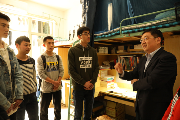 4月3日午间,校党委书记唐洪武深入学生宿舍和食堂进行走访,与学生“面对面”接触交谈。