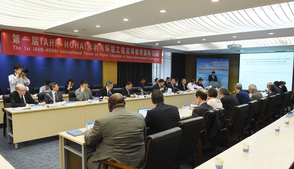 5月14日-15日,由国际水利与环境工程学会( International Association for Hydro Environment Engineering and Research,简称IAHR )与河海大学共同主办的IAHR-HOHAI第一届水利与环境工程高等教育国际论坛在我校召开。中国工程院土木、水利与建筑工程学部主任张建云院士,国际水利与环境工程学会(IAHR)主席彼得·古德温受邀作主旨报告,国际水利与环境工程学会副主席詹姆斯·鲍尔、阿图罗·马卡诺、西尔克·维普雷希特,秘书长拉蒙·古特雷斯·塞里特、执行长苏伟文等IAHR执委一行,中国水科院彭静副院长,南京水科院李云副院长等出席论坛。河海大学党委书记唐洪武,水利部人才开发中心主任陈楚,河海大学高级国际顾问、IAHR前执行长克里斯托弗·乔治等分别致辞,河海大学校长徐辉主持论坛开幕式,副校长徐卫亚主持论坛。