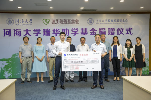 6月10日,江苏省瑞华慈善基金会向我校捐资800万元设立“河海大学瑞华助学基金”。江苏省瑞华慈善基金会副理事长张奥星、秘书长张颂杰,江苏瑞华投资控股集团有限公司副总裁侯波、董事长助理郑志慧,瑞华慈善基金会项目经理陈辉、品牌经理洪磊,河海大学校长徐辉、校党委副书记郭继超,相关部门负责人以及师生代表参加了捐赠仪式。郭继超副书记主持捐赠仪式。