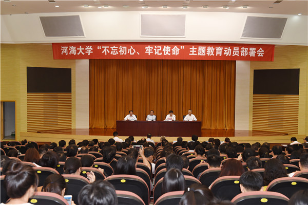 9月16日,河海大学召开“不忘初心、牢记使命”主题教育动员部署会,全面部署学校主题教育各项工作。教育部直属高校“不忘初心、牢记使命”主题教育第七巡回指导组组长李廉出席会议并讲话,校党委书记唐洪武作动员讲话,校长徐辉主持大会。第七巡回指导组副组长刘永章,成员任晓东、赵丽娜、王琦,校领导,部分老领导,全体中层干部,以及教授党员代表、教职工党员代表和学生党员代表等400余人参加大会。